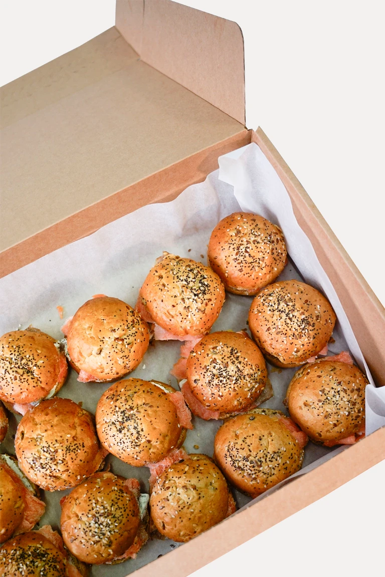 Bocata de salmón ahumado y queso con eneldo 18uds